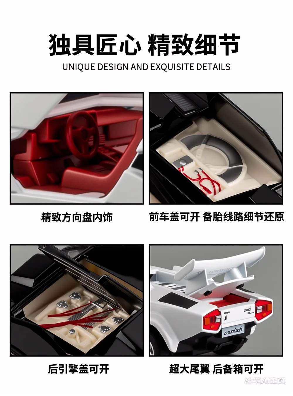 1:32 Countach LP5000s Alloy Classic Sports Car Model Diecast Metal Retro