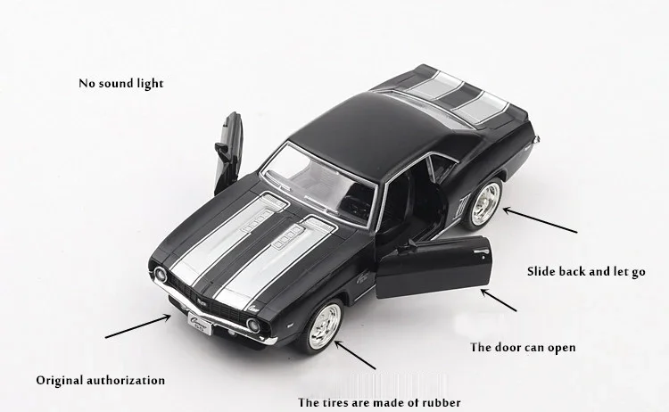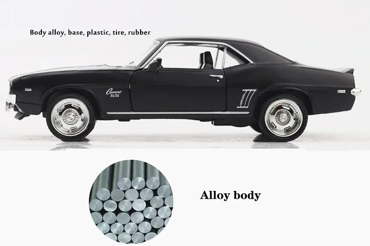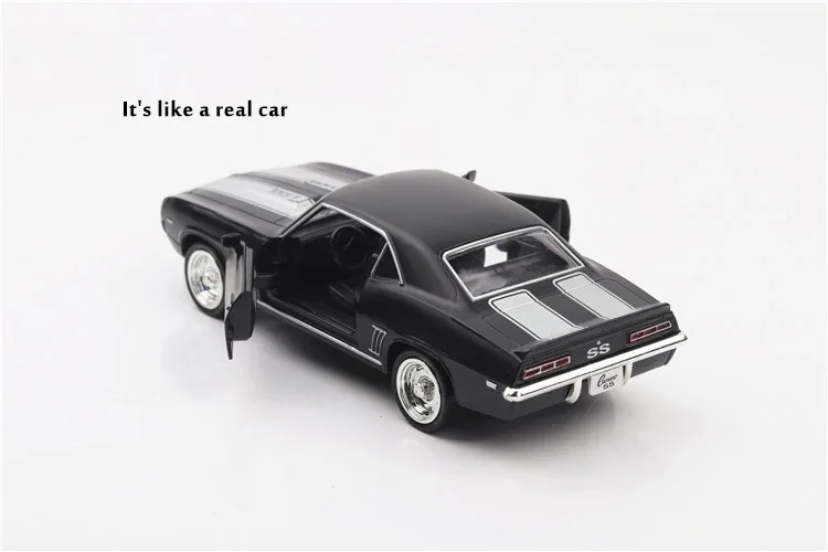 1:36 Chevrolet USA 1969 Camaro SS Vintage Matte Black Diecast Metal